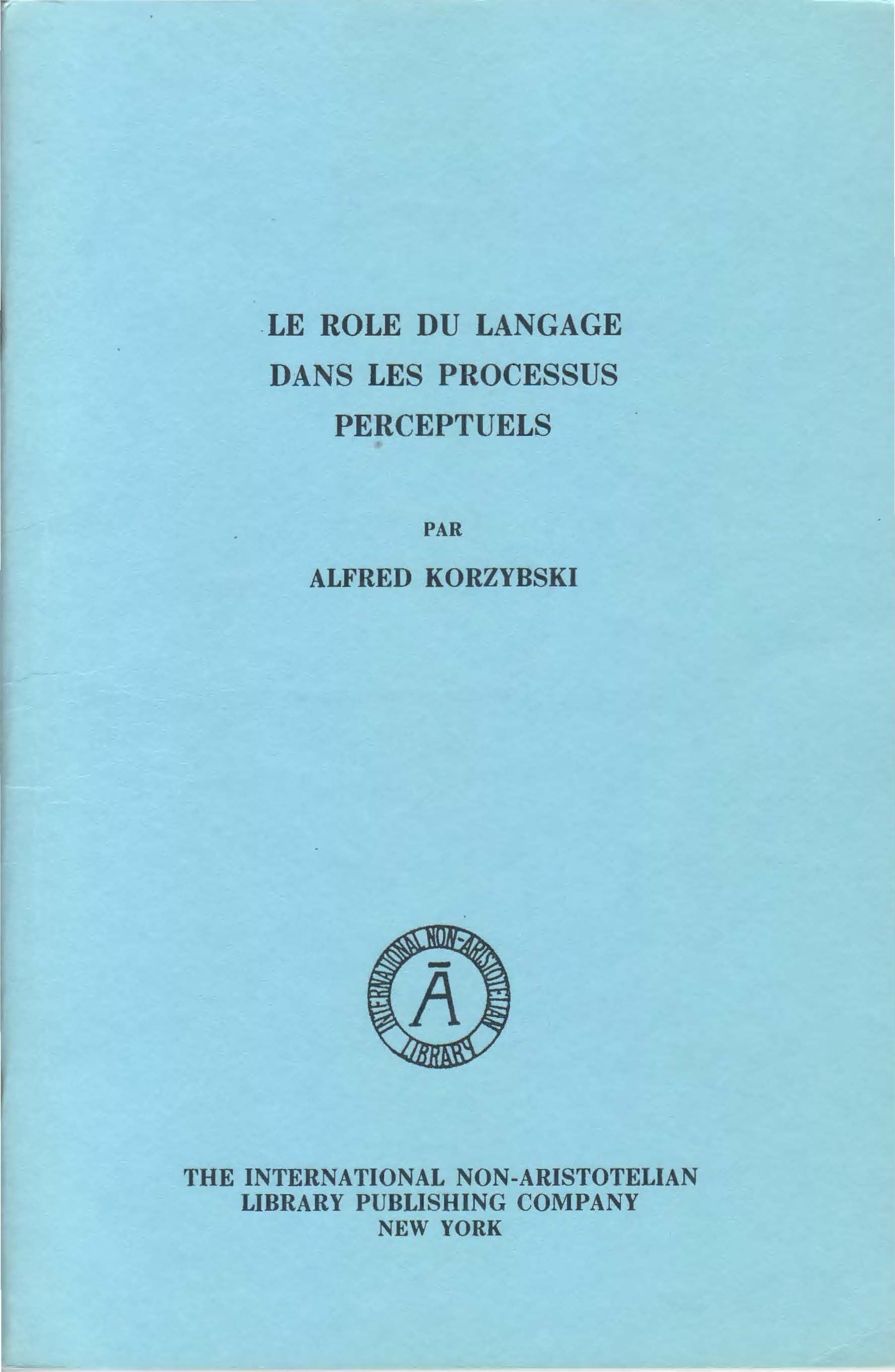 The French version of Alfred Korzybski's long essay "The Role of Language in the Perceptual Processes." Available in searchable PDF (French OCR). From the back cover:Nous devons comprendre que la possession d'une forme de connaissance est automatiquement une réforme de l'esprit. Il faut donc diriger nos recherches du côté d'une nouvelle pédagogie. Dans cette voie qui nous tente personnellement depuis plusieurs années, nous allons prendre pour guide les travaux si importants et si peu connus en France de l'ecole non-aristotélicienne fondée en Amerique par Korzybski.Les conditions psychologiques et même physiologiques d'une logique non-aristotélicienne ont été resolument envisagées dans le grand travail du comte Alfred Korzybski, Science and Sanity, an introduction to non-aristote/ian systems and general semantics ... envisage la réforme, dans le sens non-aristotélicien, de multiples sciences. Elle propose cette réforme comme un plan de santé, comme une éducation de la vigueur, comme l'intégration de la pensée active dans le progrès de la vie.Searchable PDF. 56 pages. 20 MB filesize.- Gaston Bachelard La Philosophie du Non Presses Universitaires de France